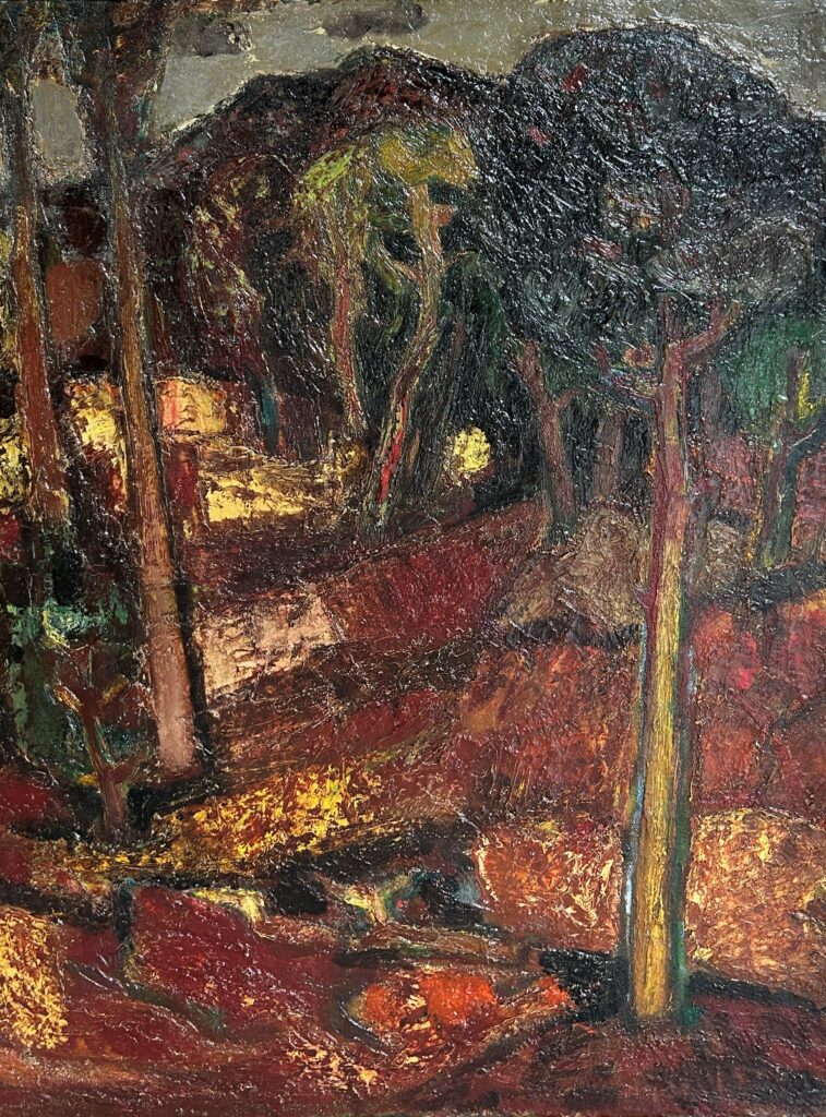 Dit olieverfschilderij van Jaap Min (1914-1987) wil graag in het licht gezet worden. Het is pasteus opgezet in rijke Bergerbos kleuren. Prijs op aanvraag.
